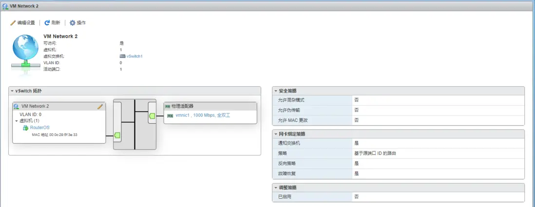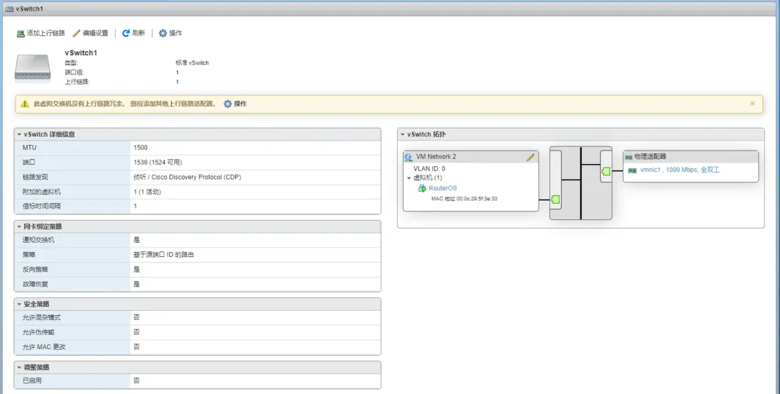 如果我沒記錯的話,ESXi一開始只給Ethernet 1口做了配置,我們得手動給Ethernet 2配置虛擬網絡。