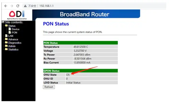 本來重啓之後,應該先看一下ONU狀態是不是O5來着,但是當時我忘了看,直接電腦上撥號成功,間接也證明了LOID註冊成功。不過還是放個文檔裏扒出來的圖好了。