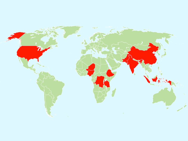 By 2100, the population of the planet will stabilize at 11 billion, and 50% of the world will live in just these 10 countries highlighted below, only one of which is in what we now consider the developed West.