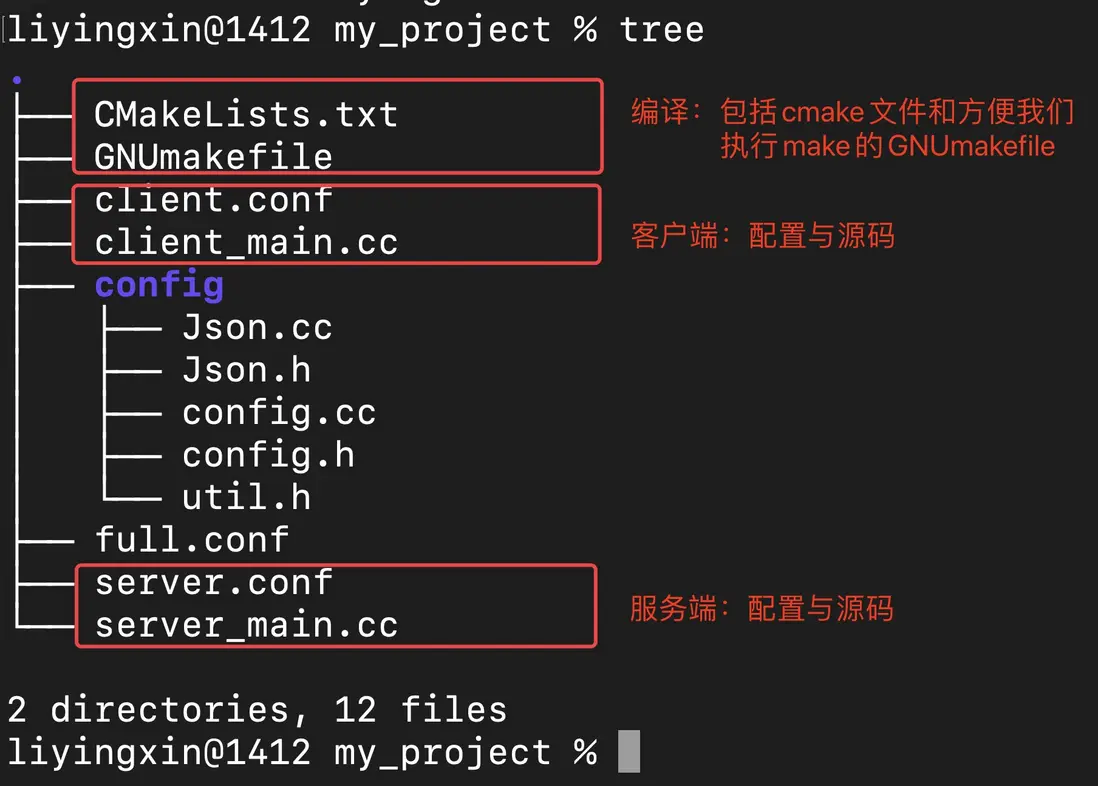 我們執行tree命令,查看這個項目裏的文件結構。