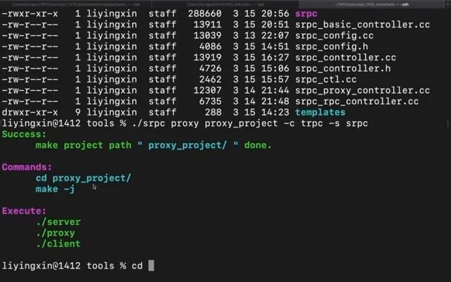 ./srpc proxy proxy_project -c trpc -s srpc