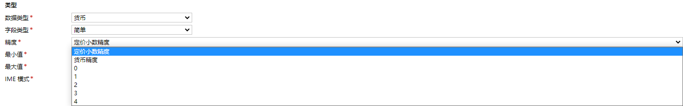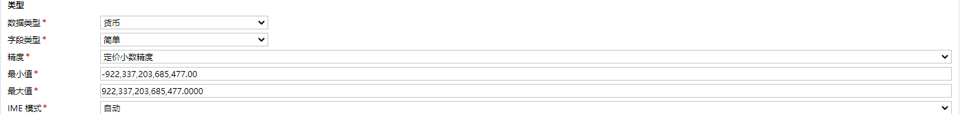 貨幣類型在Dynamics CRM是一個自定義的數字類型字段,數據庫以Decimal方式存儲。在產品界面可以看到貨幣類型的字段旁邊會有一個貨幣符號在旁邊表示該字段是與錢有關的一個字段。同時支持計算與彙總,並且精度的方式有多種。另外它的範圍更大,(-922,337,203,685,477.00~922,337,203,685,477.00)