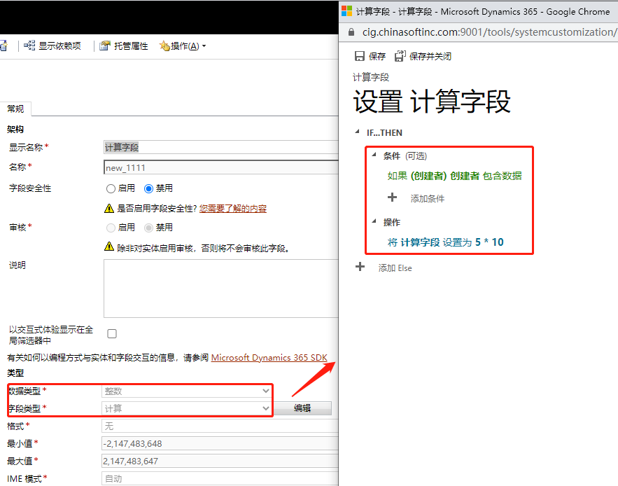 如果設置了計算字段類型的話可以對字段設置計算規則,圖中表示的是如果創建者不為空則字段值為5*10.