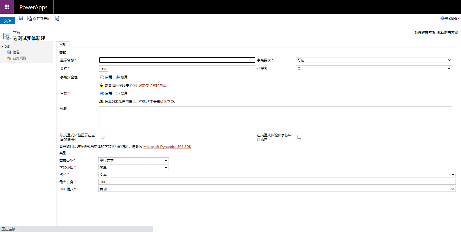 - 字段安全性:是否啓用字段安全性權限。詳情點擊字段安全性配置瞭解。