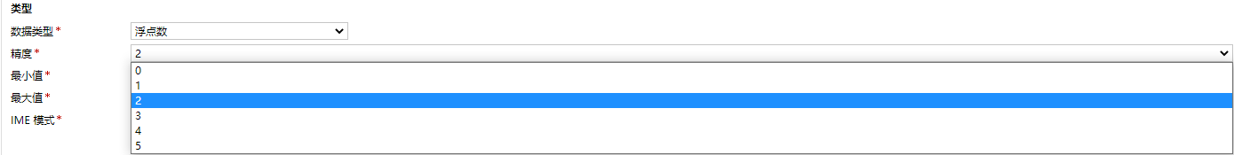 浮點數代表小數,可以選擇0-5位小數做精度,取值範圍(-1,000,000,000.00~1,000,000,000.00)