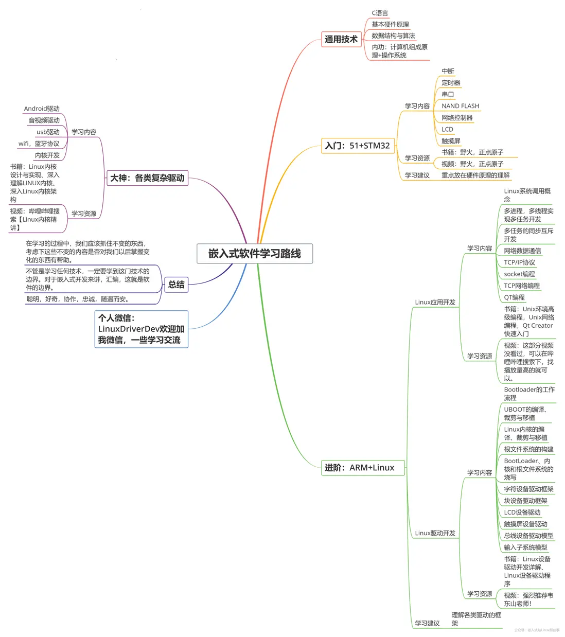 一般自學能到第二個階段就已經相當不錯了。複雜驅動部分一般是在工作中學習的。像Android驅動,音視頻驅動,usb驅動,wifi,藍牙協議,內核開發等都是比較深入一點的東西了,隨便拿出一塊內容,深入鑽研下都可以成為這個領域的專家。