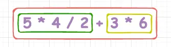 5 * 4 / 2 + 3 * 6 這是一個簡單的算法運算,但是如果我們要通過樹形的方式表達它的話,結果可能是以下這樣:
