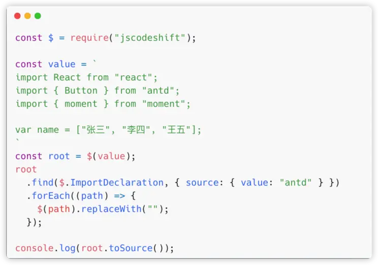 為了快速瞭解,我們這篇以 JavaScript 文件為例,那麼解析與操作 JavaScript 文件,已經有了比較好用的輪子 -- jscodeshift,我們下面就利用 jscodeshift 來操作 AST