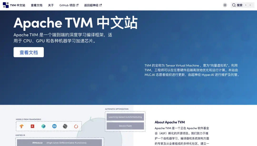 內容一覽: 近日,由 MLC 社區志願者共同翻譯校對的 TVM 中文文檔正式發佈,現已託管至超神經官網 Hyper.AI。