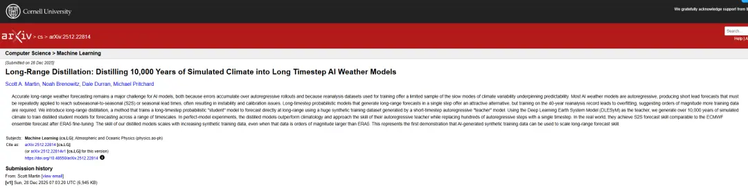 相關研究成果以「Long-Range Distillation: Distilling 10,000 Years of Simulated Climate into Long Timestep AI Weather Models」為題,已發表於 arXiv 。