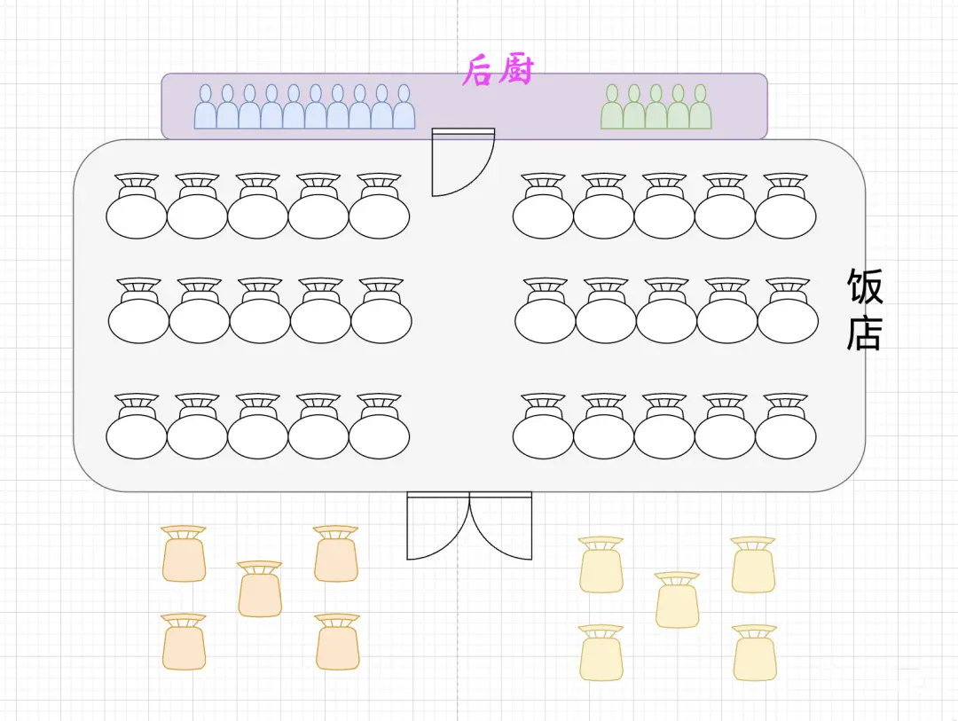 如果把Tomcat比作一家飯店的話,那麼一個請求其實就相當於一位客人。min-spare就是廚師(長期工);max是廚師總數(長期工+臨時工);max-connections就是飯店裏的座位數量;accept-count是門口小板凳的數量。來的客人優先坐到飯店裏面,然後廚師開始忙活,如果長期工可以幹得完,就讓長期工幹,如果長期工幹不完,就再讓臨時工幹。圖中畫的廚師一共15人,飯店裏有30個座位,也就是説,如果現在來了20個客人,那麼就會有5個人先在飯店裏等着。如果現在來了35個人,飯店裏坐不下,就會讓5個人先到門口坐一下。如果來了50個人,那麼飯店座位+門口小板凳一共40個,所以就會有10人離開。