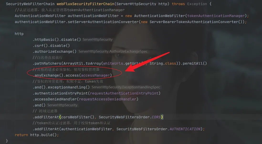 這個鑑權管理器在網關鑑權的文章中也有介紹,在陳某的《Spring Cloud Alibaba 實戰》中配置攔截也很簡單,如下: