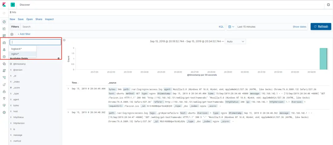 相信通過上面的步驟您已經成功的搭建起了自己的 ELK 實時日誌平台,並且接入了 Logback 類型的日誌。但是實際場景下,幾乎不可能只有一種類型的日誌,下面我們就再在上面步驟的基礎之上接入 Nginx 的日誌。