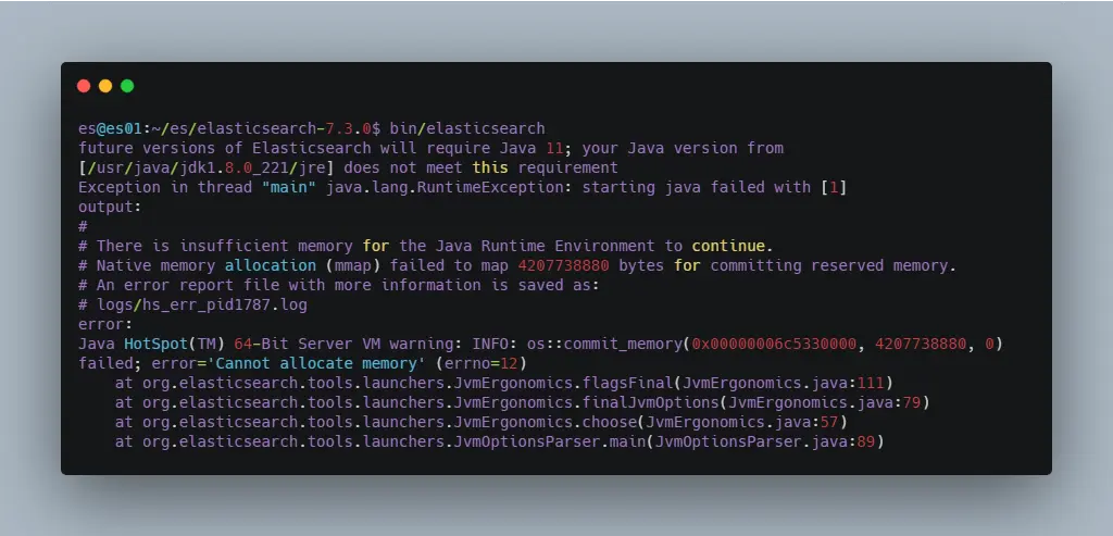圖 4. 內存過小導致 Elasticsearch 啓動報錯