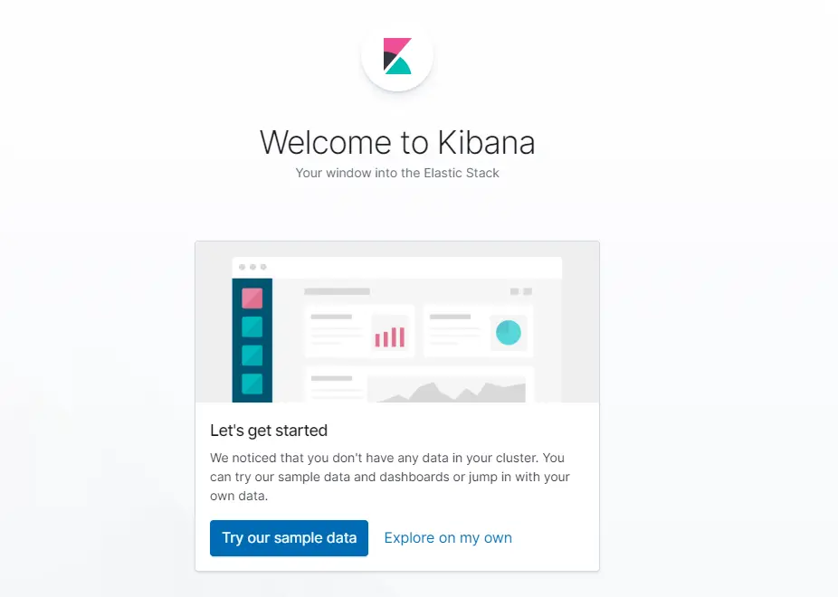 在瀏覽器中訪問 http://ip:5601 ,若出現以下界面,則表示 Kibana 安裝成功。