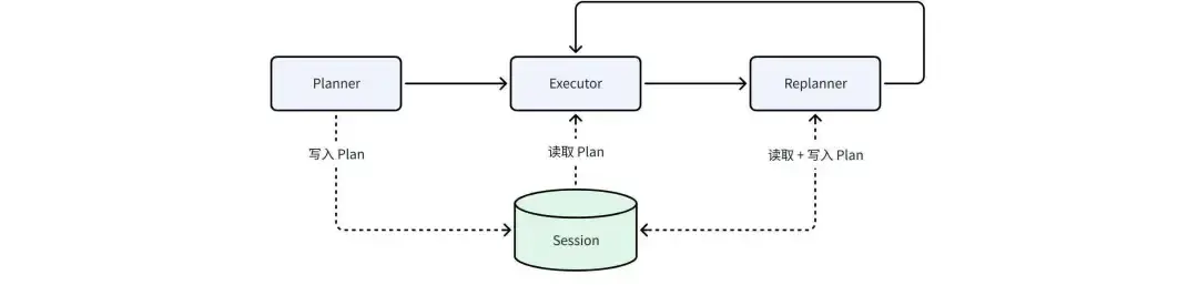- 順序運行:先運行 Planner,再運行 Executor 和 Replanner;Planner 只運行一次。