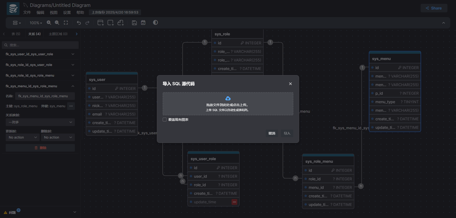 8、反向工程:也支持導入已有的 DDL 腳本快速生成可視圖