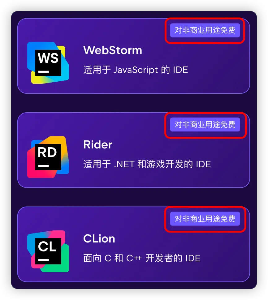 陸續官宣了 WebStorm、Rider 以及 CLion 這幾款強大的 IDE 對非商業用途全面免費!