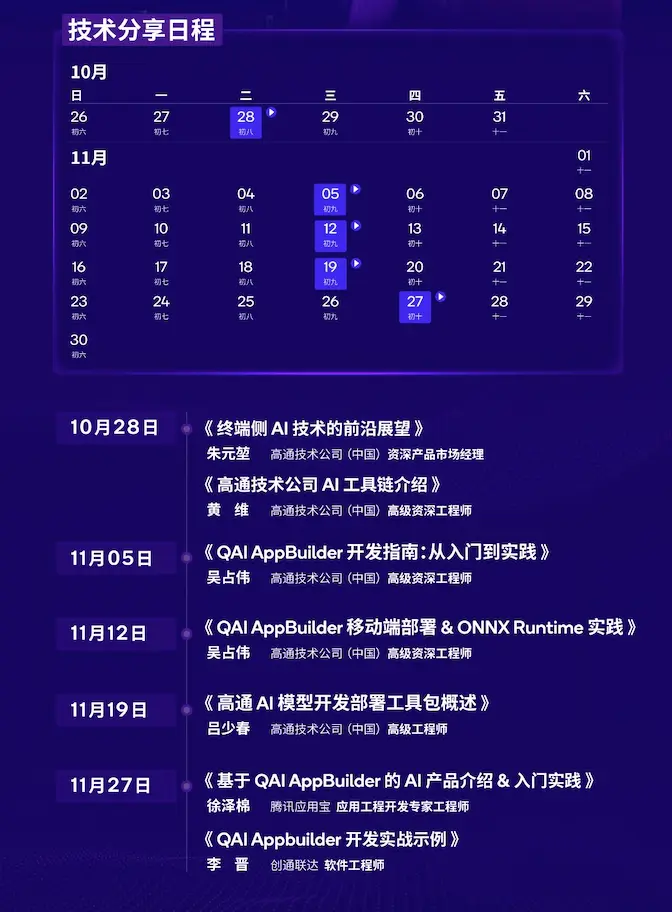 大賽開設5場技術分享,並有有專家講師在線答疑,助力參賽者高效開發與打磨作品,直播日程如下: