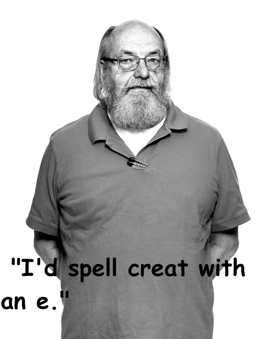 Ken幽默地回答説:“我會把creat拼成帶e的create”。