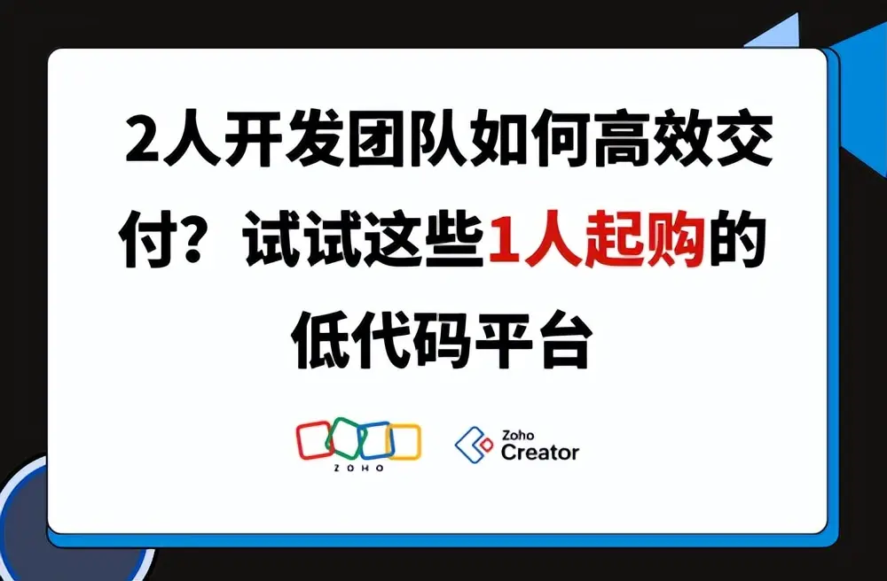 對於2人開發團隊而言,選擇合適的低代碼平台至關重要。Zoho低代碼平台以其1人起購的靈活定價、豐富的功能模塊和強大的集成能力,成為小團隊高效交付的理想選擇。
