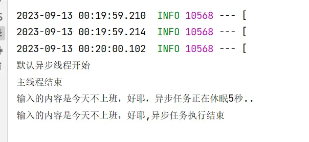 System.out.println("輸入的內容是" + str + ",異步任務正在休眠5秒..");