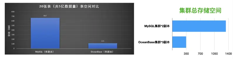 圖7 OceanBase與MySQL表空間與集羣總存儲空間測試數據