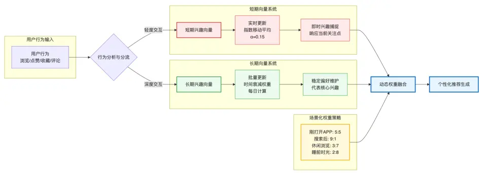 short_term_vector VECTOR(768), -- 即時興趣(秒級更新)