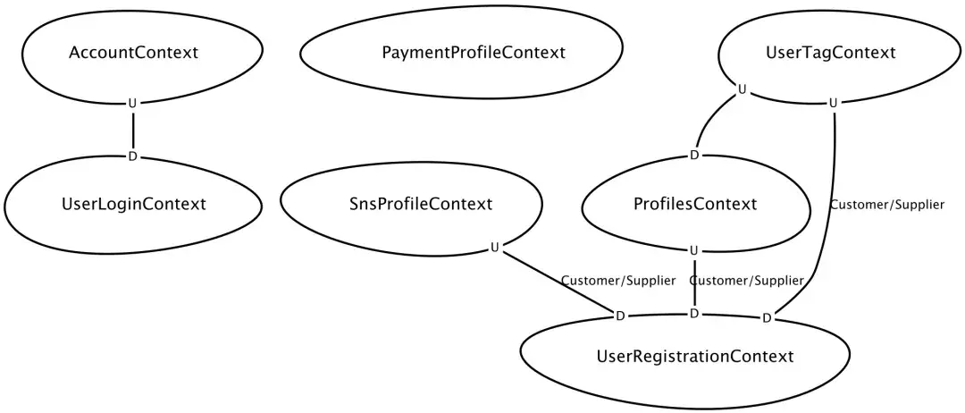 UserRegistrationContext [D,C]<-[U,S] SnsProfileContext {