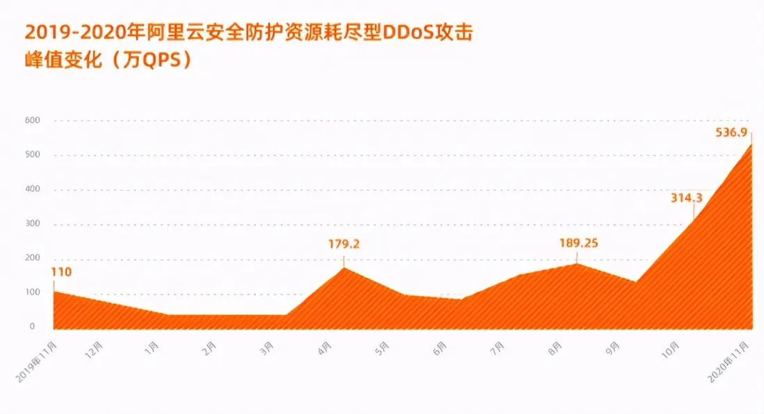 2019-2020阿里雲安全防護資源耗盡型DDoS攻擊峯值變化
