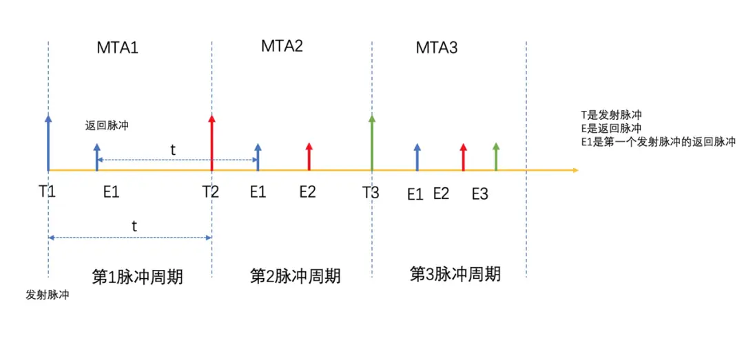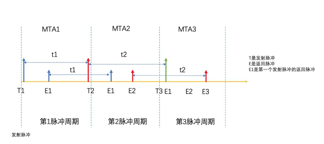 通常將反射信號可能跨過的收發週期數稱為“MTA區間”,匹配時間上最近的一個發射信號為MTA1,次近的發射信號為MTA2…依此類推。