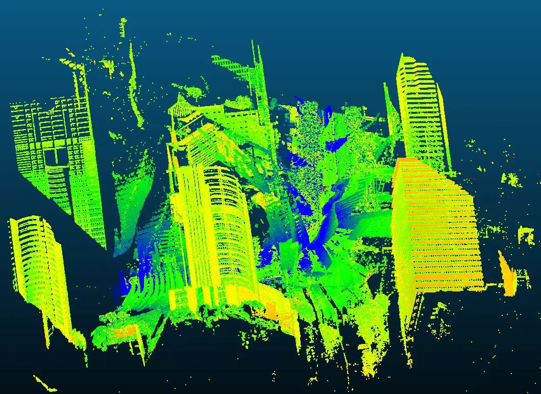 通過週期性地“發射激光-接收回波”,即可根據光飛行參數得到一系列測量點距離,結合激光自身的位置和姿態即可計算出反射點的位置。