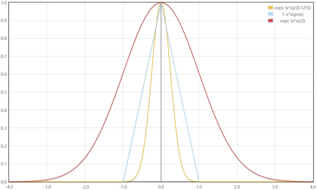 總的加權策略是距離方差越大,權重越小;反射率方差越大,權重越小。具體權值選擇採用高斯函數或三角函數。