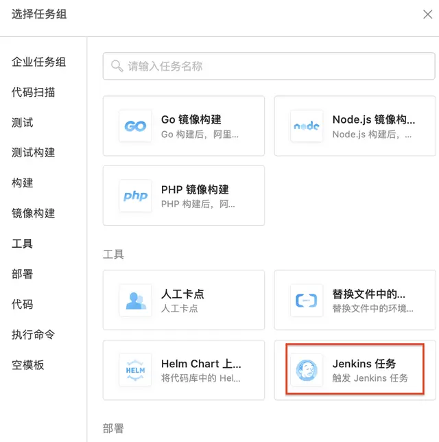 編輯雲效流水線,添加一個任務節點,選擇Jenkins任務。