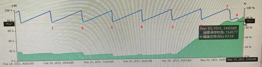 圖3:消息保存時間&磁盤空間佔比趨勢圖