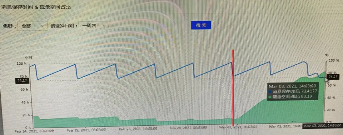 圖1:消息保存時間&磁盤空間佔比趨勢圖