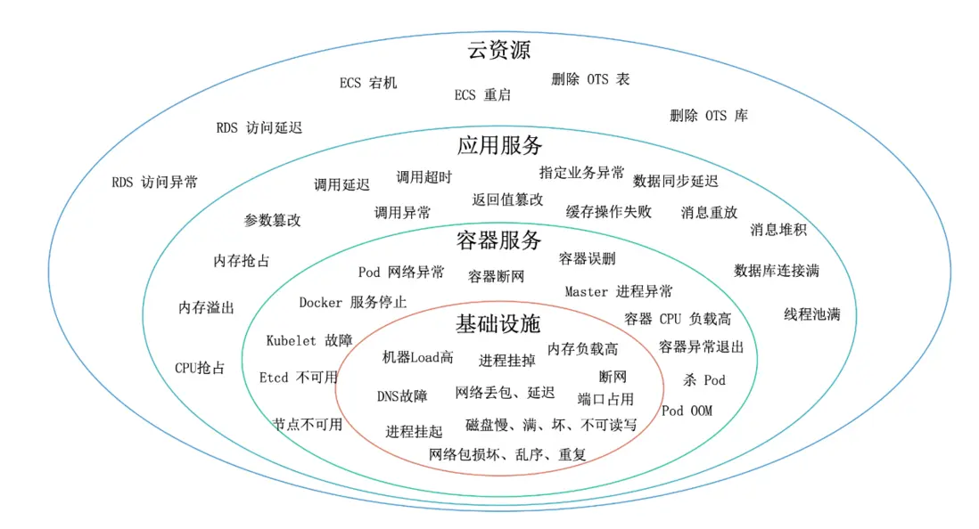無論用户是需要設置集羣級別的大規模故障還是應用級別的請求級別細粒度故障,都可以在AHAS Chaos找到適合的場景,下圖是AHAS Chaos提供的部分故障場景。