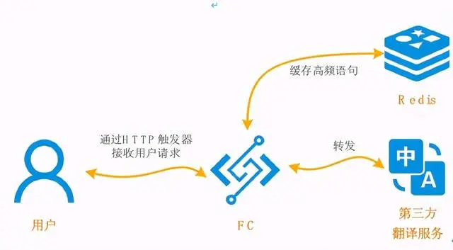 對於在線翻譯這樣的簡單業務邏輯實現,從傳統架構遷移到 Serverless 架構是輕而易舉的事情。江娛互動把每條由玩家發起的翻譯請求當成函數計算的一次任務,拉起對應的計算資源進行處理,任務完成之後自動將資源釋放。因為江娛互動的技術團隊對 Java 語言的熟悉程度最高,在 Serverless 改造過程中換用 Java 語言來實現在線翻譯功能,同時也能充分利用 Java 系豐富的生態能力。當然,函數計算並不限制使用特定的開發語言,也不侷限於特定的業務邏輯,主流的開發語言都可以非常好的支持。通過 Serverless 化改造後,在線翻譯業務的系統架構變得更為簡單。