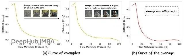當把這個指標在FLUX.1模型的生成時間步上畫出來時,他們發現了一個規律: