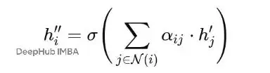 有了注意力係數αij,每個節點就可以通過聚合鄰居的特徵來更新自己的表示了:
