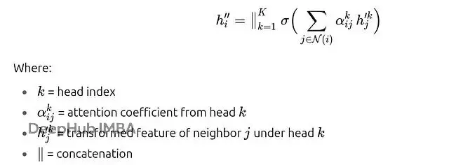 多頭機制的好處很明顯。單個注意力頭可能會過度偏向某個鄰居(比如節點A對C的偏好過強),多個頭可以提供不同的視角來平衡這種偏向。每個頭都有自己的權重矩陣Wk和注意力向量ak,它們關注鄰域的不同方面。在中間層不同頭的輸出通常會被拼接起來;在最終層則通常取平均值來產生最終預測。