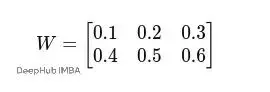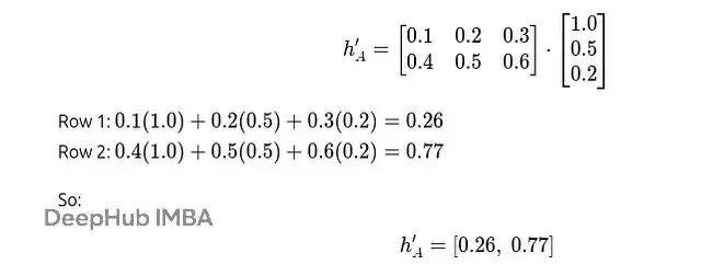 我們設定原始特徵維度F=3,變換後的維度F′=2,權重矩陣W的值為(實際應用中這些權重是隨機初始化然後訓練得到的):
