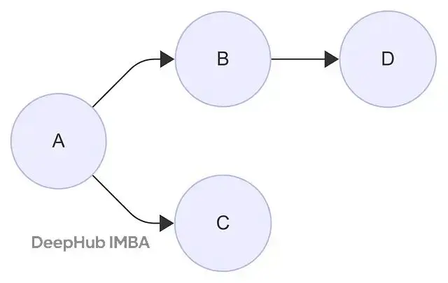 我們用一個簡單的4節點圖來演示這個過程。節點A、B、C、D的連接關係如下圖所示: