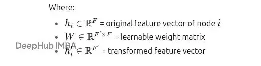GAT計算注意力之前,需要先對節點特徵進行線性變換。這一步用共享的權重矩陣W將原始特徵投影到新的特徵空間。