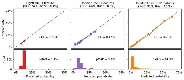 最優模型應該在校準和區分度之間取得平衡。可以考慮用ECE/pMAD比值,或者先設定pMAD下限再優化ECE。具體用哪種策略,取決於業務場景對這兩個維度的實際需求。