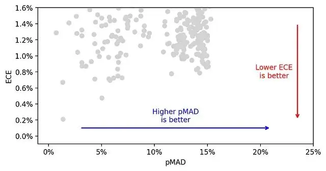 理想的模型應該是低ECE、高pMAD,也就是圖的右下角區域。