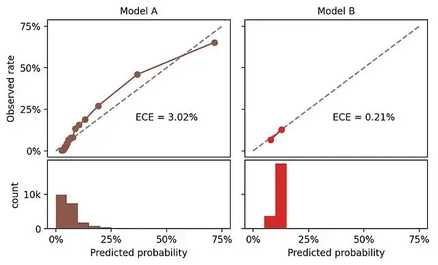 光看圖不夠還需要一個數值指標。Expected Calibration Error (ECE) 正是從校準圖直接推導出來的。