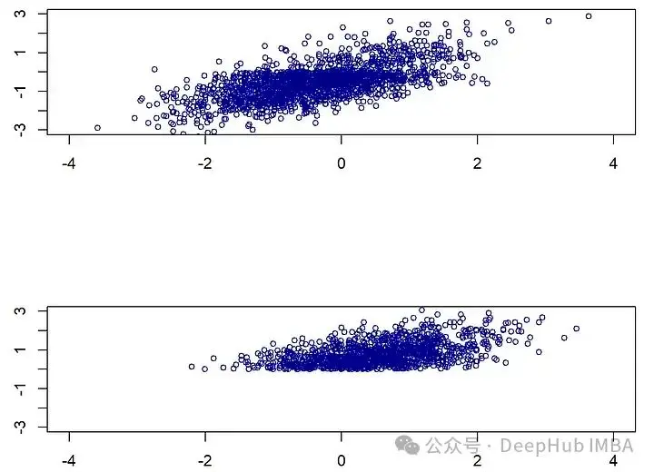 Xstar<-mvrnorm(n=n, mu=c(0,0), Sigma=matrix( c(1,0.7,0.7,1), nrow=2, byrow=T ))