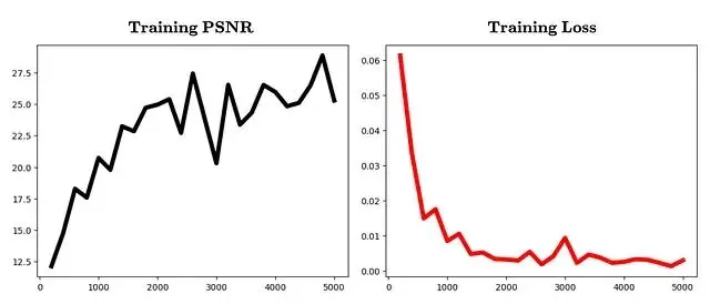 迭代次數與PSNR、損失值的變化曲線: