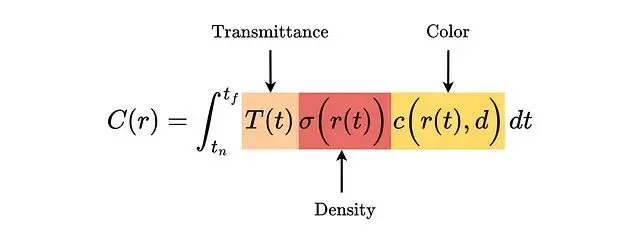光線的期望顏色C(r)定義如下,沿光線從近到遠積分: